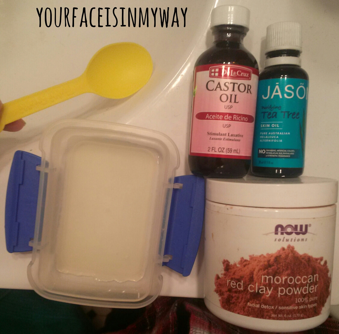 The lime juice is great for oil control and has astringent properties. Moroccan Red Clay is excellent for tightening the skin, oil control and has major detoxing properties. I purchased mine months ago at Vitamin Shoppe. Castor Oil is moisturizing but not super heavy when mixed in with these other ingredients. Turmeric is a popular natural Ayurvedic home remedy for acne. It helps with brightening and soothing acne prone skin. Turmeric is an excellent ingredient to lighten acne scars (I have a ton of those). Tea Tree Oil is a miracle oil that I cannot live without from Australia. It has astringent properties, soothing, cooling and anti acne goodness squeezed into a tiny little bottle for like $12 at the health food store.
